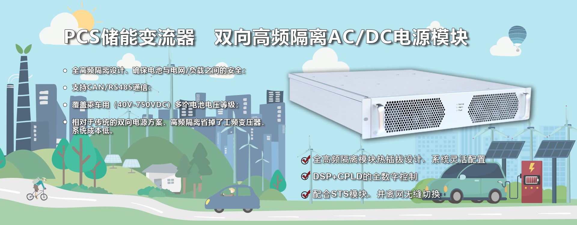 模塊化儲能變流器,用V2G高頻隔離模塊構建而成,兼有高頻隔離與模塊化的優(yōu)點,機柜兼容IBG75027與IBG30050模塊,根據需求靈活配置成不同功率等級與不同電池電壓的儲能變流器。